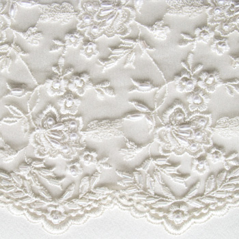 Shown is the Flowery lace which is used on the sleeves and bottom of this gown. It is available with or without pearls and glass beads.