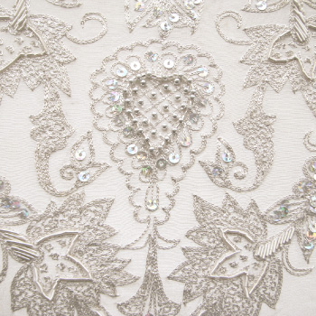 The shown silk is embroidered in silver thread, dainty silver beads and sequins.