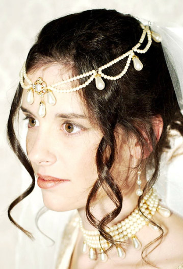 Delicate strands of draping pearls and pearl drops make this headpiece the perfect accent to any wedding ensemble.