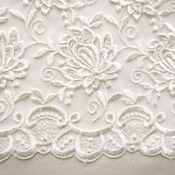 The Rosebud Lace is a rayon thread on rayon netting, giving it softness and shine.