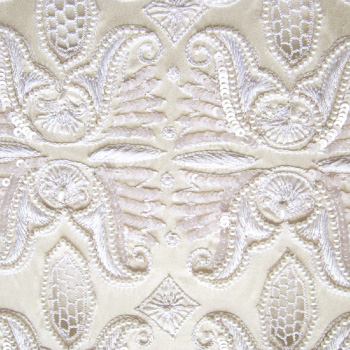 The Rosebud silk is a heavily beaded and embroidered silk with tiny pearls, sequins and silk embroidery thread.