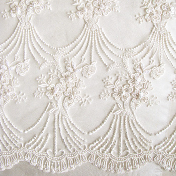 netting heavily beaded with delicate pearls.