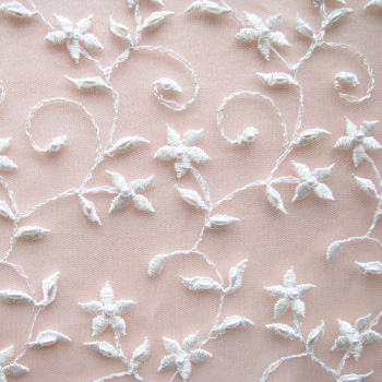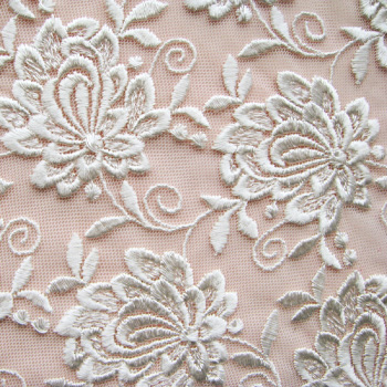The Rosebud lace and the Delicate lace. Both laces are shown over color to give you an idea of how it would look on your gown.