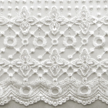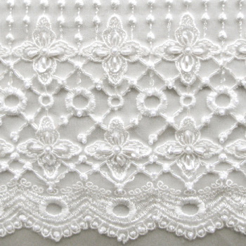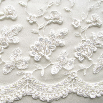 The snowflake lace is used for the delicate lace over train and is available with or without beads.