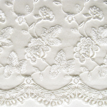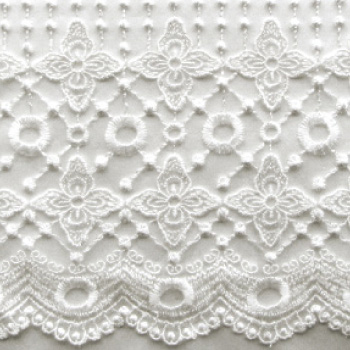 The first lace is called the flowery lace. It is used mainly down the front and for the bottom sleeves of the Star Jeweled Gown. It is available with beads, without beads and with beads and added rhinestones. It is made of off white rayon thread on top of nylon netting.