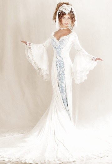 The Star Jeweled Gown is an exceptional gown which is available in 4 variations: Exquisite, Elegant, Blue Exquisite, and Enchantress.The Exquisite and Elegant styles are very similar; the main difference is the Exquisite style has a long train with a French ruffle around it. The Blue Exquisite shows the gown with a touch of color on the breasts and front of the gown. The Enchantress variation shows the gown entirely in color. It is available in many colors with or without lace on the breasts and front of the gown.